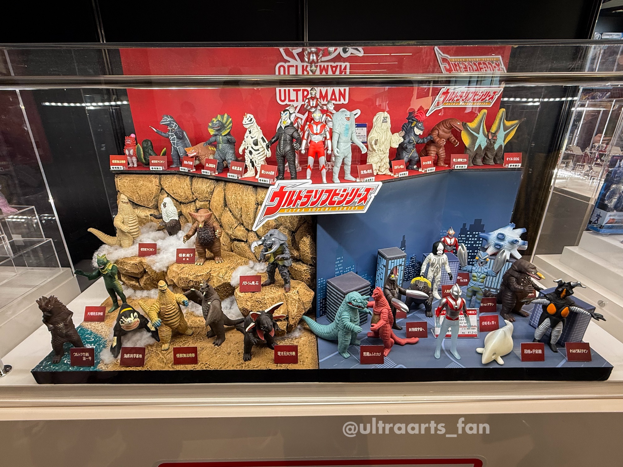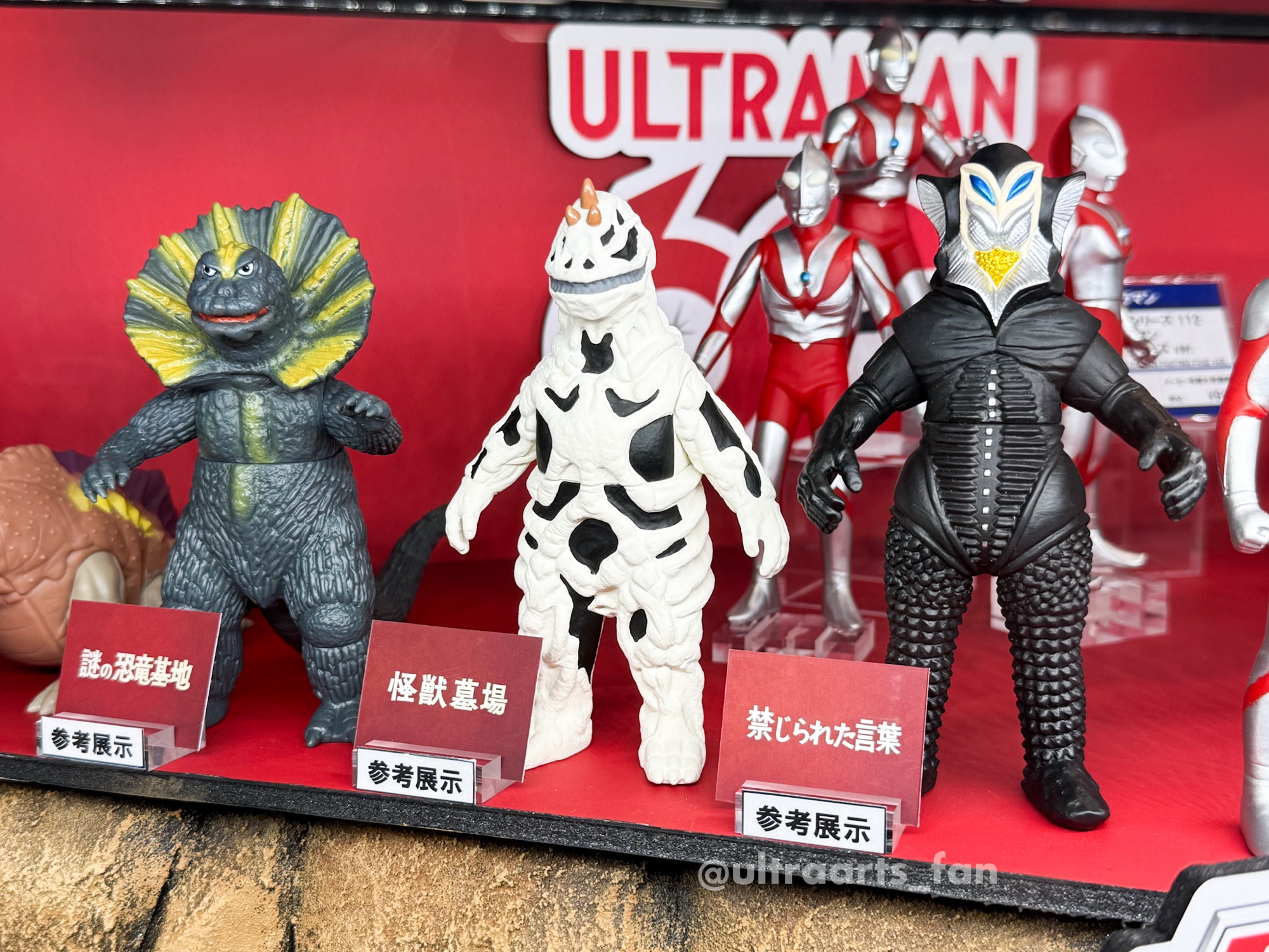 シリーズ60周年を記念して初代「ウルトラマン」に登場する怪獣たちが参考展示。